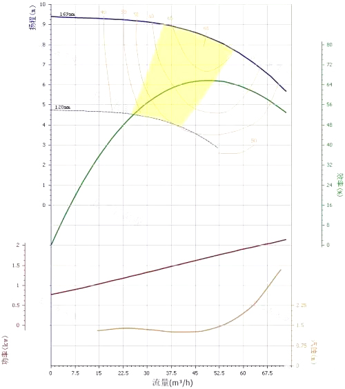 是切割外徑的切割線(拋物線)。方塊ABCD稱為泵擴(kuò)大r的工作范圍,泵町以在此范同的任點(diǎn)工作,而且效率下降最多不會(huì)超過(guò)10%。把許多泵的工作范圍畫在一張坐標(biāo)圖中,稱為型譜。為了使圖形協(xié)調(diào).高揚(yáng)程