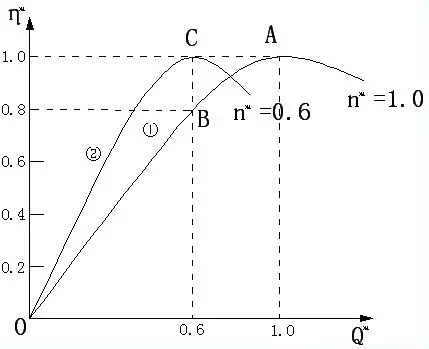如閥門開度為100%、轉速也為100%(與額定轉速之比),則系統(tǒng)處于額定狀態(tài),這時的工作點稱為額定工作點,或自然工作點