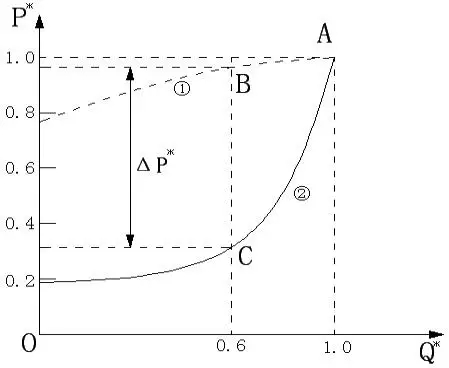 以適應擁護對流量的需求。這時,管路特性將隨著閥門開度的改變而改變,但揚程特性不改變。由圖2所示,設用戶所需流量QA減少為QB,當通過關小閘門來實現(xiàn)時,管阻特性將改變?yōu)榍€③,而揚程特性則