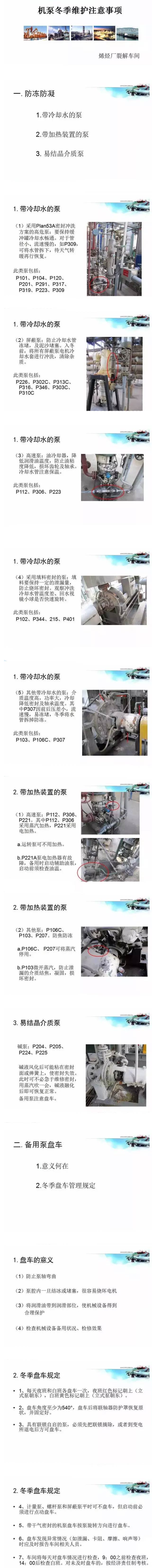 1水泵用畢后,要確保存水排空,并檢查管線是否下沉,如有存水的地方要進(jìn)行往外排水,保證停泵放氣后泵體中的存水能正常排出,防止因回水、外部溫度過(guò)低,管路結(jié)冰。