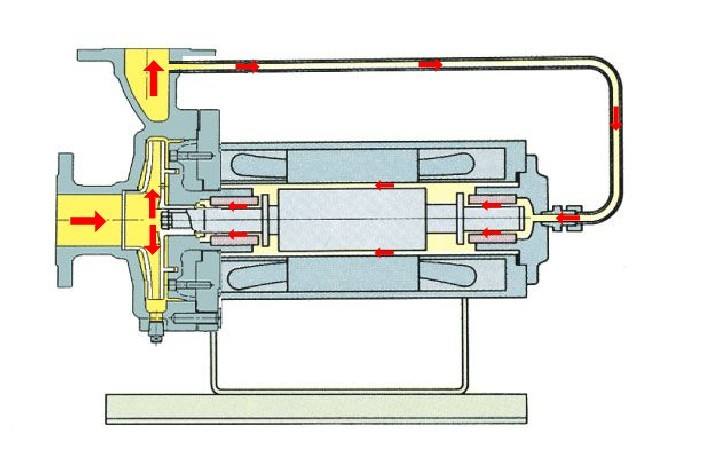 屏蔽泵是一種無密封泵,泵軸與電機軸共用一根軸,葉輪裝在這根公共軸上,電機與泵融為一體,都被密封在一個被泵送介質(zhì)充滿的壓力容器內(nèi),此壓力容器只有靜密封,并由一個電線組來提供旋轉(zhuǎn)磁場并驅(qū)動轉(zhuǎn)子。
