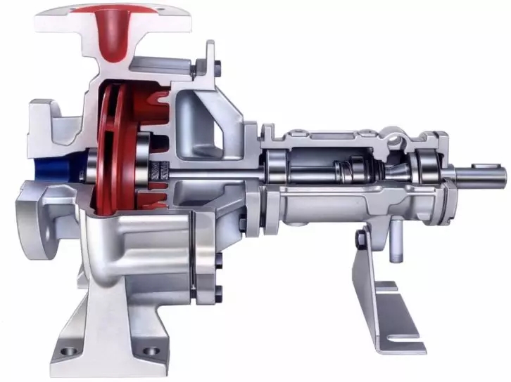 按泵體與泵蓋的剖分位置不同,又可分為前開式和后開式兩種結(jié)構(gòu)。后開式泵的優(yōu)點(diǎn)在于檢修時,只要將托架止口螺母松開就可以將托架連同葉輪一起取出,不必要拆卸泵的進(jìn)、排液管路。