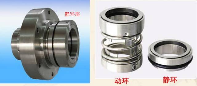 機械密封通常由靜環(huán)、動環(huán)、壓緊元件和密封元件組成。動環(huán)和靜環(huán)的端面組成一對摩擦副,動環(huán)靠密封室中液體的壓力使其端面壓緊在靜環(huán)端面上,并在兩環(huán)端面上產(chǎn)生適當(dāng)?shù)谋葔汉捅3忠粚訕O薄的液體膜而達到密封的目的。