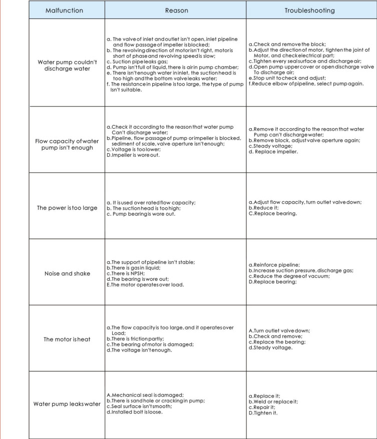 Inlet pipeline should full with liquid, prohibit pump to operate in cavitate condition;