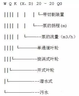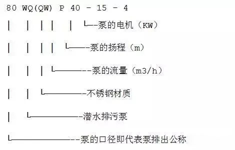 Q:潛水W:排污G:管道Y:液下N:泥漿Z:自吸L:立式AS:撕裂JY:攪勻P:不銹鋼B:防爆QW(WQ)無堵塞潛水式排污泵