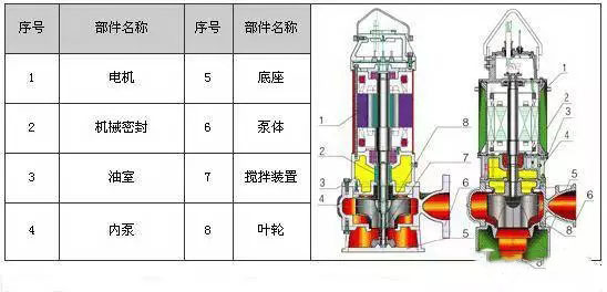 WQ潛水式排污泵主要部件由葉輪、泵體、底座潛水電機組成。水泵和電機是同一根軸,由于水泵位于整個排污泵最下端,它能最大限度抽吸地面積余污水。