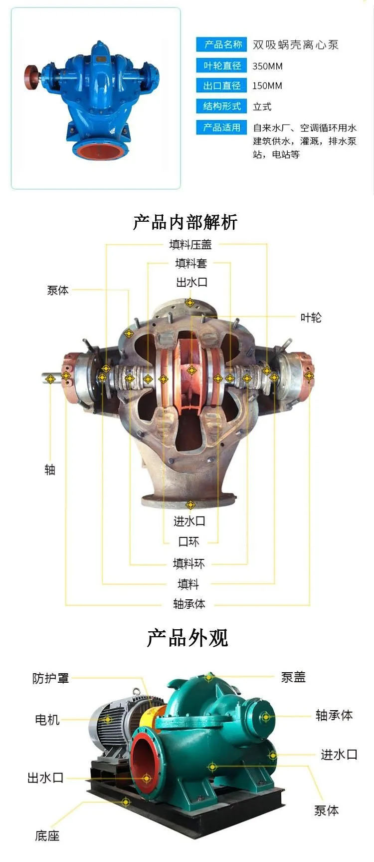S(SH)型單級(jí)雙吸中開式淸水泵采用國(guó)內(nèi)優(yōu)秀的水力模型制造具有高效節(jié)能的特點(diǎn)。