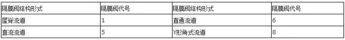 6、隔膜閥結(jié)構(gòu)形式代號表:
