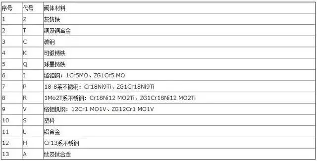 1、閥門型號閥體材料代號表: