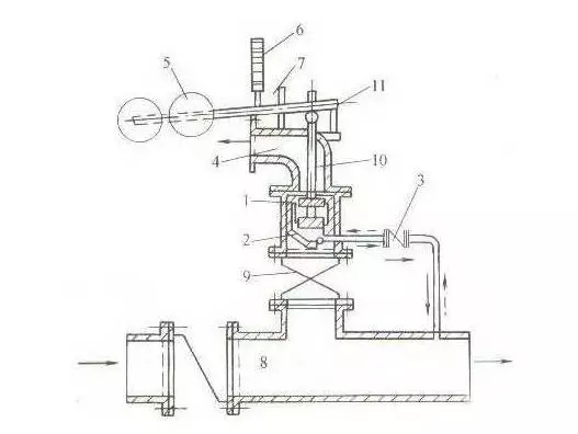 8-管道;9-閘閥(常開);10-活塞聯桿;11-支點