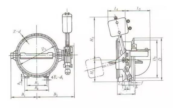 緩閉式止回閥有止回閥和緩閉機構組成,常用有緩閉式止回閥、液壓式緩閉蝶閥等。當突然停泵時,通過緩閉傳動機構,使止回閥逐漸關閉,允許部分水通過水泵倒流回水池,從而減弱了水錘強度。在泵站中得到廣泛采用。圖3為液壓式緩沖止回蝶閥。