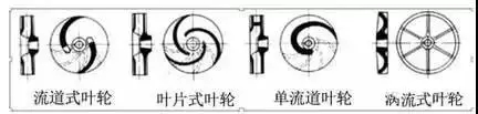 按結(jié)構(gòu)分: 流道式(單流道、雙流道)、葉片式(閉式、開(kāi)式)、螺旋離心式、旋流式四種。