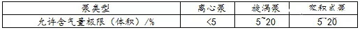 表3 各類泵輸送液體的允許含氣量