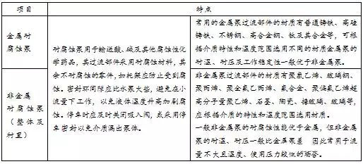 輸送腐蝕性介質(zhì)的泵應(yīng)選用耐腐蝕泵,其結(jié)構(gòu)特點(diǎn)見(jiàn)表4,表5和表6為常用泵材料的性能。