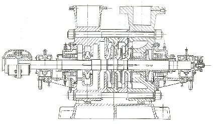 低壓鎘爐給水泵輸送液體的溫度一般在110℃左右,其結(jié)構(gòu)和一般分段式多級(jí)離心泵基本相同,大部分可以互相通用。對(duì)于中壓鍋爐給水泵,由于工作壓力和工作溫度比低壓的高,通常對(duì)軸封裝置的要求也較高,軸承除需要潤(rùn)滑外,有的還用循環(huán)水冷卻。為了隔熱,有的在泵體外用鋼板卷成圓筒罩。泵的支承有的采用中心支承。