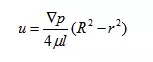 由式可知管內(nèi)流速u(mài)沿半徑方向按拋物線(xiàn)規(guī)律分布,最大流速在軸線(xiàn)上,其值為: