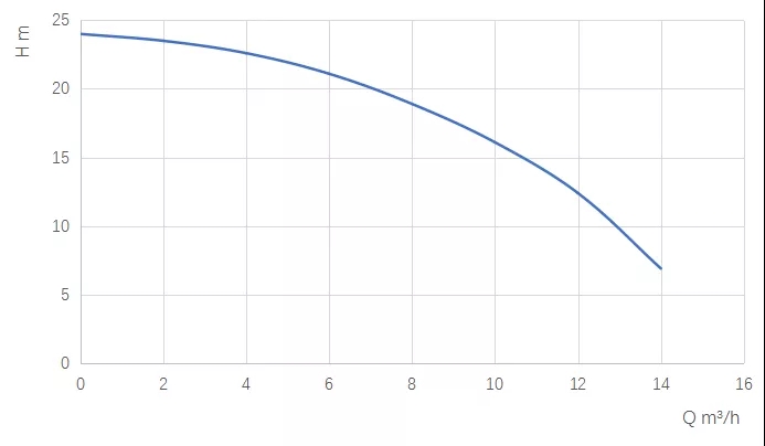 排污泵自身有一個(gè)性能曲線,標(biāo)志著水泵可以工作在哪些工況點(diǎn)上,例如如下這個(gè)水泵曲線:
