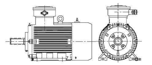 B3安裝方式:電機靠底腳安裝,電機有一圓柱形軸伸