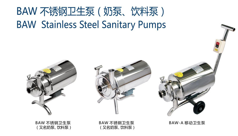 BAW衛(wèi)生級(jí)離心泵由以下部分組成:標(biāo)準(zhǔn)的馬達(dá)、葉輪、泵殼、衛(wèi)生機(jī)械密封。它具有專業(yè)清洗系統(tǒng)(CIP)設(shè)計(jì)的內(nèi)部無(wú)死角和可清洗的密封,外部由一個(gè)不銹鋼的外罩可保護(hù)馬達(dá),還有四個(gè)可調(diào)節(jié)的不銹鋼支腳。