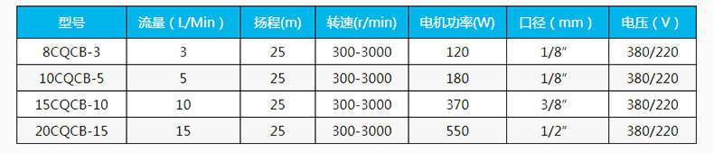 CQCB微型磁力齒輪泵性能參數(shù):