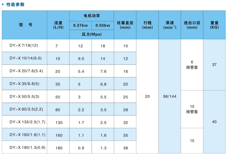 DY-X液壓隔膜式計量泵性能參數: