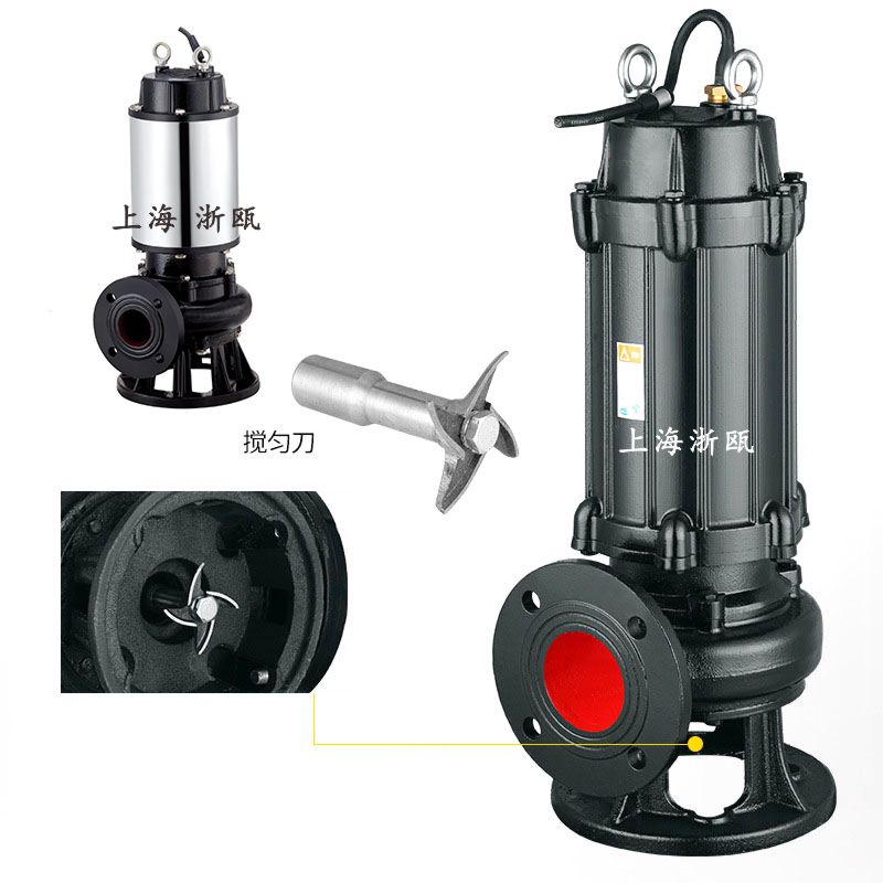 結(jié)構(gòu)特點說明 1、采用獨特的雙流道無堵塞葉輪結(jié)構(gòu),提高污水污物的過流能力和排污能力。 2、自動攪拌裝置,產(chǎn)生極強(qiáng)的攪拌力,將池內(nèi)的沉淀物攪拌成懸浮物后吸入葉輪排出,達(dá)到清淤的作用。 3、隔板將底座一分為二,攪拌與進(jìn)水互不影響。 4、機(jī)械密封為雙端面機(jī)械密封,長期處于油室中,保證水泵安全可靠地運行。 5、副葉輪結(jié)構(gòu)的流體動力密封,既有輔助密封作用,從而保護(hù)機(jī)械密封,又平衡軸向力,延長軸承的使用壽命。 6、泵連線腔內(nèi)沒有漏水檢測探頭,出現(xiàn)漏水時,探頭發(fā)出信號,控制系統(tǒng)對泵實施保護(hù),本公司可配全自動安全保護(hù)控制柜。 7、電機(jī)定子采用B級和F級絕緣,內(nèi)設(shè)熱保護(hù)器,當(dāng)電機(jī)過載發(fā)熱,保護(hù)器及時作出動作,對泵和電機(jī)實施絕對的保護(hù)。 8、油室內(nèi)裝有油水探頭,當(dāng)機(jī)械密封損壞后,水進(jìn)入油室,探頭發(fā)出信號由控制系統(tǒng)對水泵實施保護(hù)。 9、JPWQ帶內(nèi)循環(huán)冷卻系統(tǒng),能保證水泵在水池低水位正常工作。