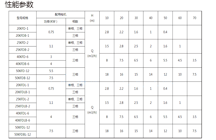 KFD自吸式氣液混合泵性能參數(shù):