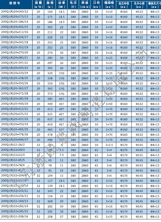 QJ不銹鋼深井泵性能參數(shù):