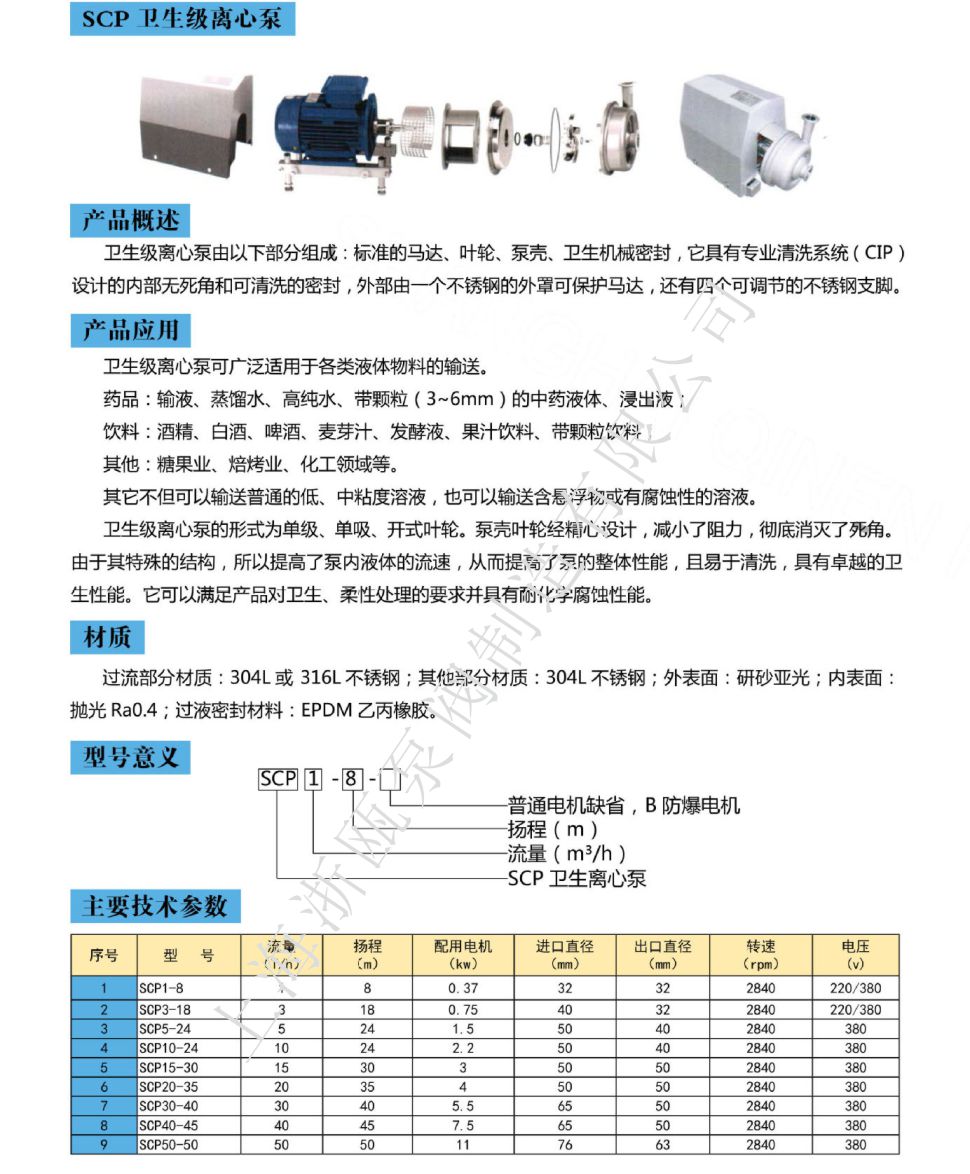 SCP衛(wèi)生級(jí)離心泵性能參數(shù):