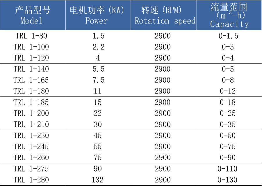 TRL-I型管線式高剪切均質(zhì)乳化泵性能參數(shù):