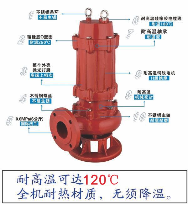 耐高溫潛水泵適合于輸送含有沙石、煤渣、纖維等雜物的液體,主要用于冶金、礦山、火力發(fā)電廠等企業(yè)和建筑工地、污水處理廠、污水處理池的污水清除及輸送,是傳統(tǒng)污水泵的理想替代產品(耐高溫潛水泵操作維護要得當)。