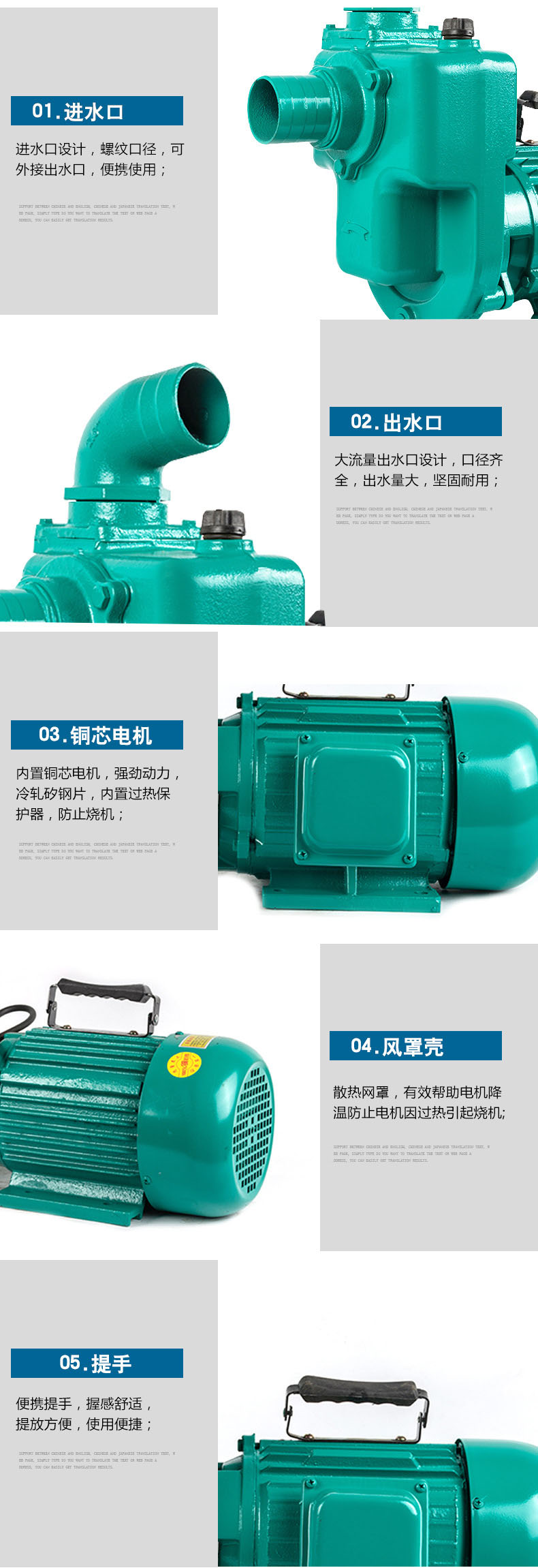強(qiáng)自吸泵小型無(wú)堵塞排污泵特點(diǎn):