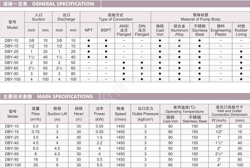 DBY-10,DBY-15,DBY-25,DBY-40,DBY-50,DBY-65,DBY-80,DBY-100