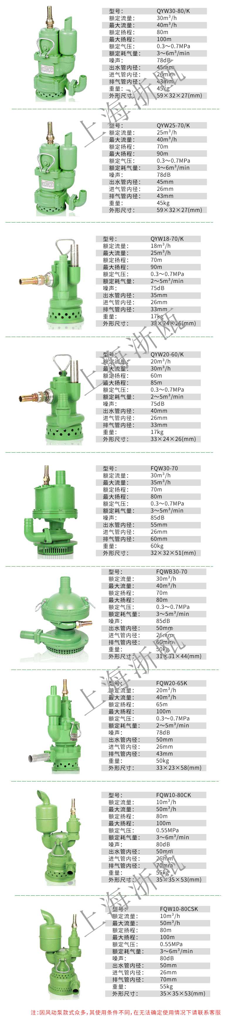 潛水礦用FWQB風(fēng)動潛水泵/QYW氣動潛水泵性能參數(shù):