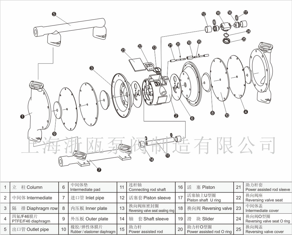 QBK氣動隔膜泵結(jié)構(gòu)圖: