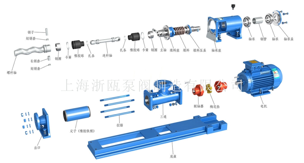 污泥螺桿泵即為單螺桿泵在污泥污水處理中的具體應用,該泵利用偏心單螺旋的螺桿在雙螺旋襯套內(nèi)的轉(zhuǎn)動,使污泥污水沿螺旋槽由吸入口推移至排出口,這就是污泥螺桿泵的工作原理。