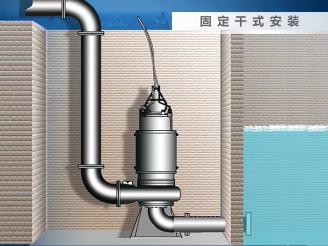 2)固定濕式安裝、固定干式安裝適用于功率≥11kw的潛水排污泵