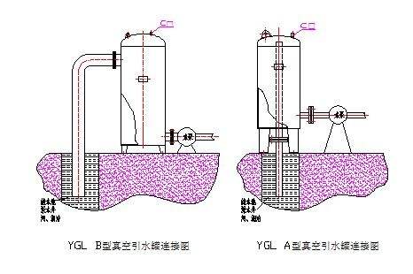 自吸泵設置泵前吸水罐。這種方式需要在水泵吸水管上設置一個吸水罐,水泵在第一次運行前,罐內(nèi)應人工灌滿水,第一次運行休止后,由于吸水罐的進水管高度高于管內(nèi)水面高度,盡管水池內(nèi)水面高度低于罐內(nèi)水面的高度,罐內(nèi)的水也不會倒流,進入水池,所以,吸水罐內(nèi)能儲存一定的水,又由于吸水罐的出水管(即水泵的吸水管)高度低于管內(nèi)水面高度,故能保證水泵的吸水管內(nèi)布滿水,以后水泵再運行時,水罐內(nèi)的水被水泵抽走,罐內(nèi)泛起負壓,水池中的水在大氣壓力的作用下增補到吸水罐內(nèi),通過吸水罐水池內(nèi)的。