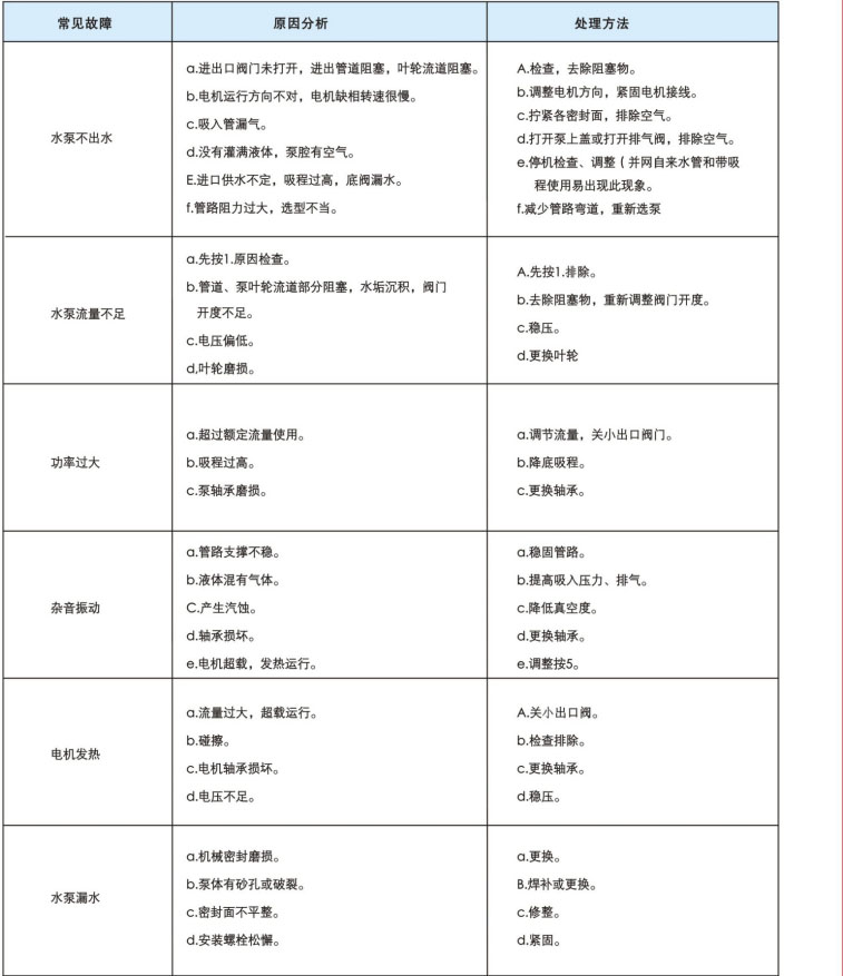 如長(zhǎng)期停用,應(yīng)將泵拆卸清洗,加防銹油,包裝保管。