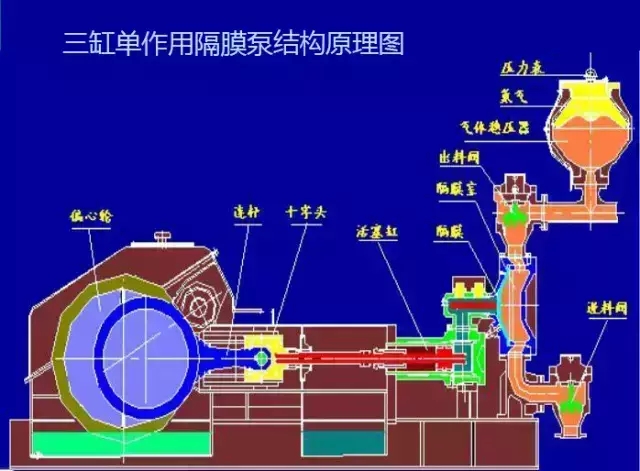 大型三缸單作用隔膜泵是長距離管道輸送領域中固-液兩相流體輸送的核心設備。