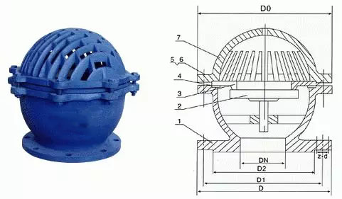 底閥由閥體、閥蓋、閥瓣、密封圈和墊片等部件組成,英文名稱(chēng)Foot Valve或Bottom Valve,屬于止回閥的一種,安裝在泵吸入口管路最低端,用于防止停機(jī)后吸入管路中的水排空。