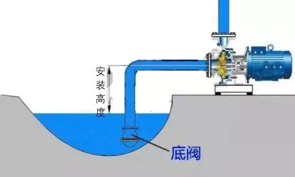 另一種特殊情況,但如果吸入高度相差太大,或吸液管管徑過(guò)大,體積超過(guò)了自吸泵泵腔內(nèi)的存液量,就不能正常工作了。這時(shí)必須要加裝底閥,保證自吸安全快速。