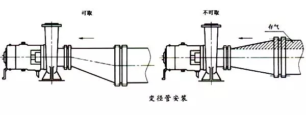泵出口管道卜的異徑管府靠近泵的出口。頂部吸人和排出的泵,在間距很小時,可采用偏心異徑管加大間距。
