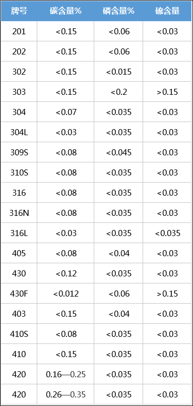 常見不銹鋼硫磷含量含量如下: