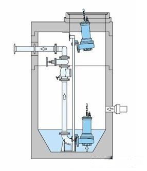 二、單臺潛水排污泵重量大于80kg的室內(nèi)污水池(集水井)檢修孔上方樓板或梁上應(yīng)預(yù)埋吊鉤,供安裝和檢修時(shí)提升潛水排污泵用。