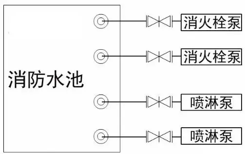 每組消防水泵的吸水管不應少于兩條,當其中一條損壞或檢修時,其他吸水管應仍能通過全部消防給水設計流量。(5.1.13)