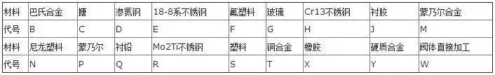 2、當閥座和閥瓣(閥板)密封材料不同時,用低硬度材料代號表示(隔膜閥除外)。