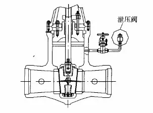 對已出廠的閥門可采用安裝時外旁路及外設(shè)泄壓閥降低中腔壓力,如圖 3 所示。