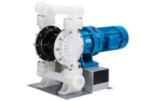 電動隔膜泵的電機通過減速箱帶動左右兩端柱塞上面的隔膜一前一后往復(fù)運動。在左右兩個泵腔內(nèi),裝有上下四個單向球閥隔膜的運動,造成工作腔內(nèi)的容積的改變,迫使四個單向球閥交替地開啟和關(guān)閉,從而將液體不斷地吸入和排出。因此電動隔膜泵具有以下優(yōu)點: