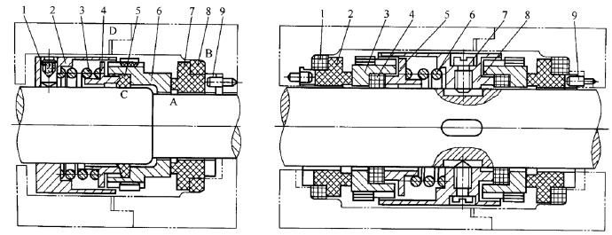 內(nèi)裝式是彈簧置于被密封介質(zhì)之內(nèi),外裝式則是彈簧置于被密封介質(zhì)的外部。